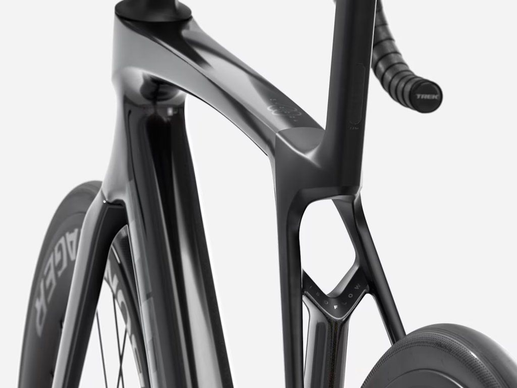 Vidlica - Plne karbónový Madone Gen 8, kónické karbónové riadenie, interné upevnenie brzdy, uchytenie kotúčov typu flat mount, skosená pevná os 12 x 100 mm